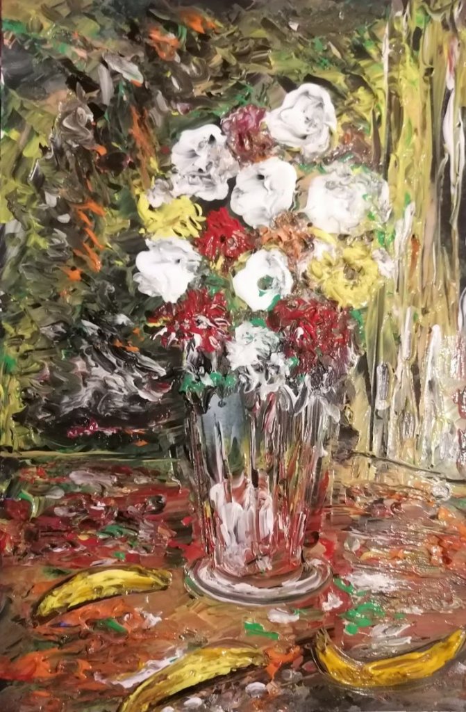 Le vase aux bananes, Acrylique 24x30 cm